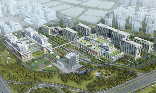 醫(yī)院建築由美國(guó)設計公司(sī)按照國際理念結合中國國情設計, 采(cǎi)用(yòng)庭(tíng)院式布局,著(zhe)力營造自然療愈空間,采用大麵積(jī)采光使(shǐ)室內外環境渾然一(yī)體。醫院設置醫學轉化中心、模(mó)擬訓練中心(xīn)、進修實習樓、學術報告廳、遠程教學中心,在門診和病區(qū)設置數字(zì)化MDT中心;配(pèi)套(tào)建設人才公寓,設置員工活動中(zhōng)心(xīn)和室內外運動場,為醫務人員創造(zào)安全舒適的工作、生活環境。