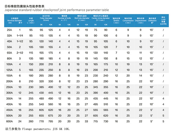 二、JIS日标橡胶防震接头参数介绍:.